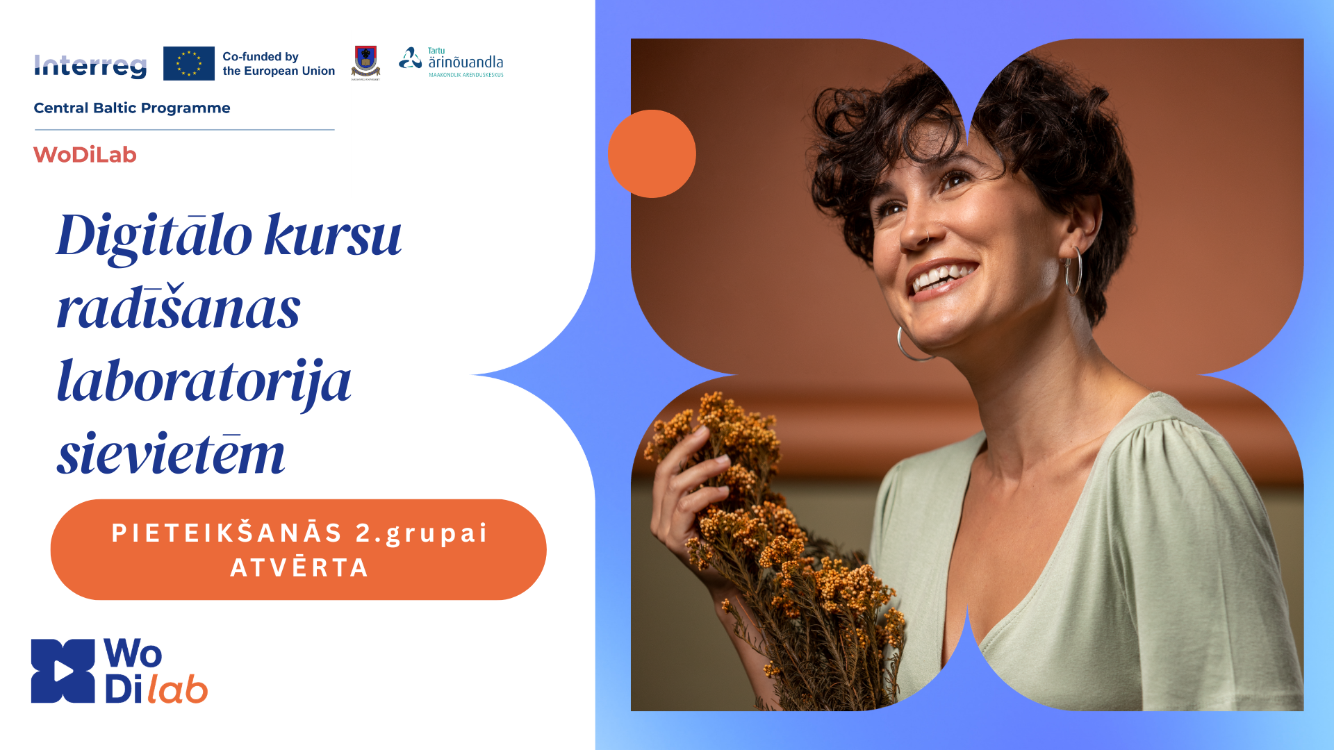 WoDiLab – Digitālo kursu radīšanas laboratorija sievietēm – tiek īstenots Interreg Centrālā Baltijas jūras reģiona programmas 2021–2027 ietvaros un ir līdzfinansēts no Eiropas Savienības līdzekļiem.